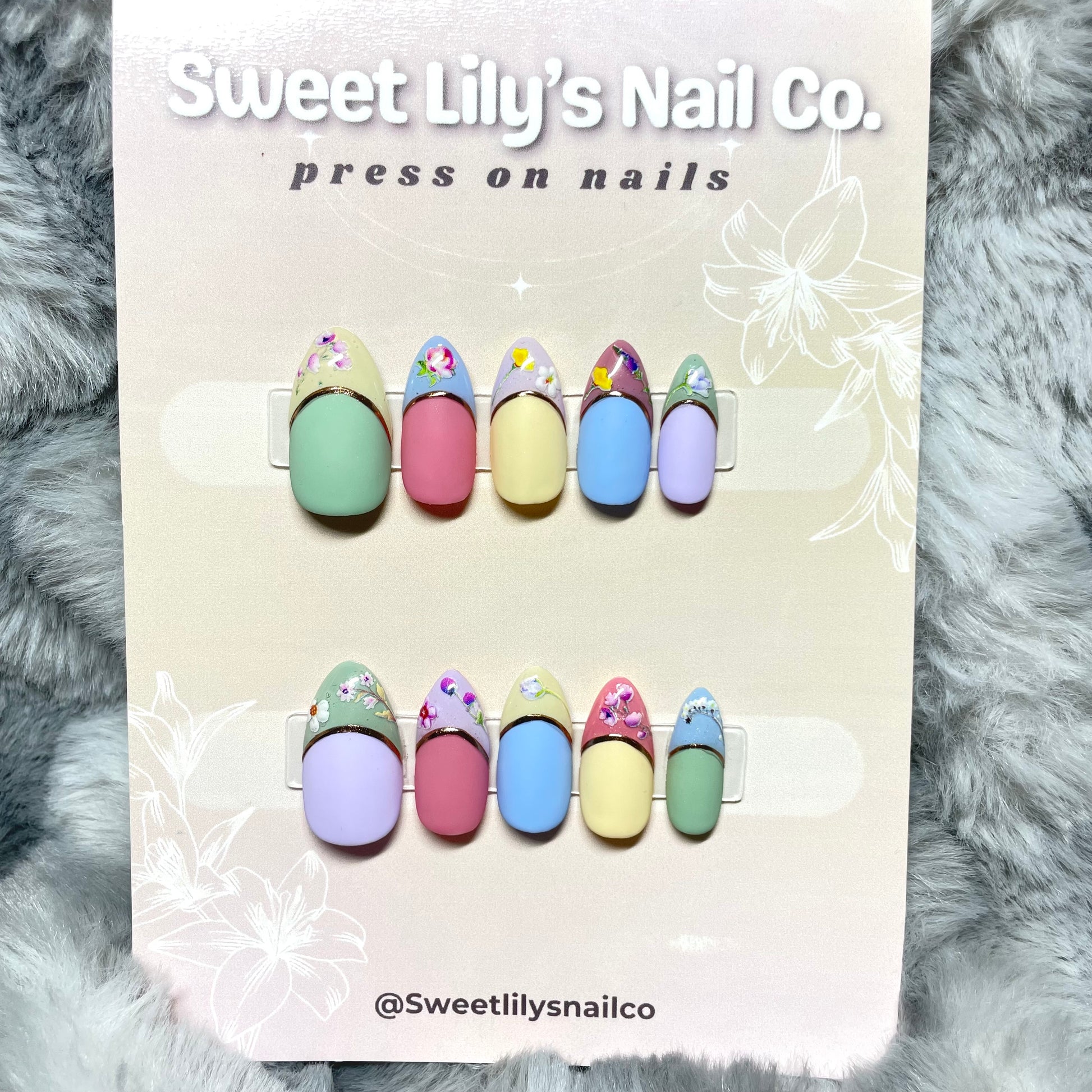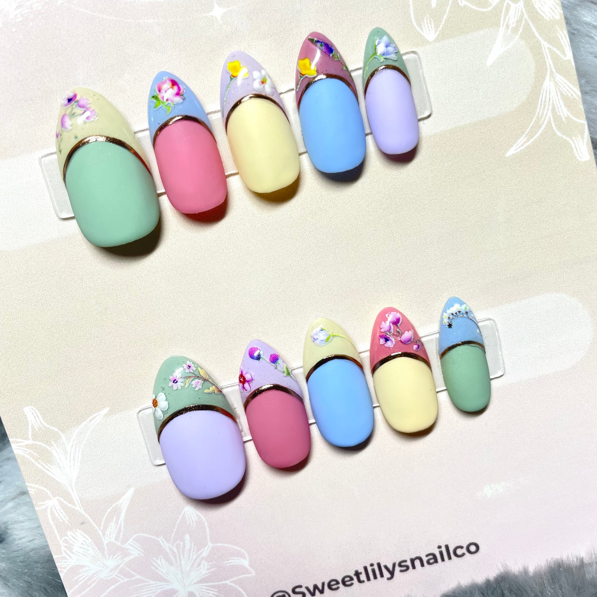Upgrade your spring look with our Flowers In Glass Set! Featuring a French tip, chrome accents, and intricate 3D gel-incapsulated flower designs, this set comes in a variety of pastel colors to match any style. Add a touch of elegance to your nails with this must-have set.
