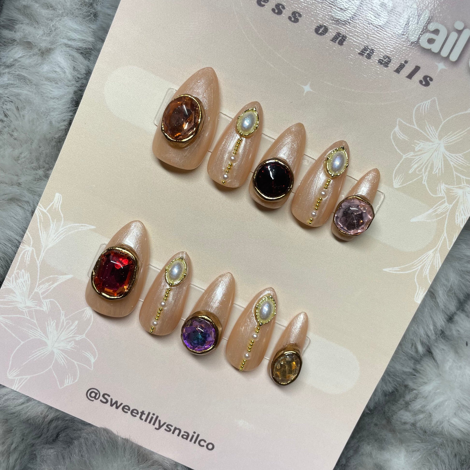 This Jewel and Pearl Set boasts a chic nude pearl base adorned with stunning gold chrome accents. Featuring intricate gold beading and delicate faux pearl charms, this set adds a touch of elegance to any look. Perfect for those who appreciate timeless and sophisticated jewelry.